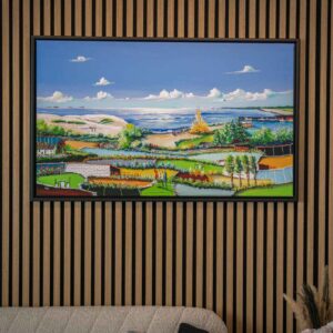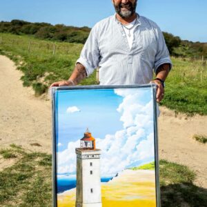Ja, vi sender både malerier og kunsttryk. Er der størrelsesbegrænsninger på forsendelser? Ja – vi kan normalt ikke sende malerier bredere end 120 cm, men kontakt os, så finder vi typisk en løsning. Hvor kan jeg afhente? Afhentning kan ske: På atelieret i Frederikshavn (efter aftale) Hos Galleri Tobar i Sæby Efter personlig aftale via telefon eller besked
