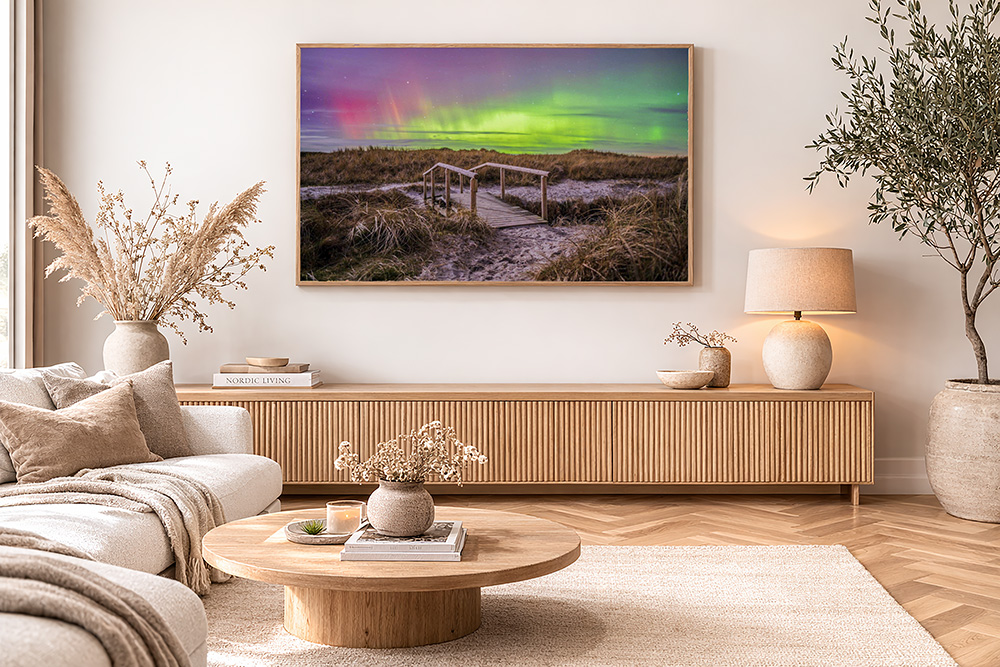 Højkvalitets lærredtryk med fotokunst af Frederik Karlsen, fotograf fra Frederikshavn med galleri i Sæby. Motiverne er ofte landskaber fra Nordjylland med glade farver. Billedet er uden ramme og bukket rundt om kanten og kan bestilles med sort svæve- eller fast egetræsramme. Andre størrelser kan bestilles – kontakt os for info.